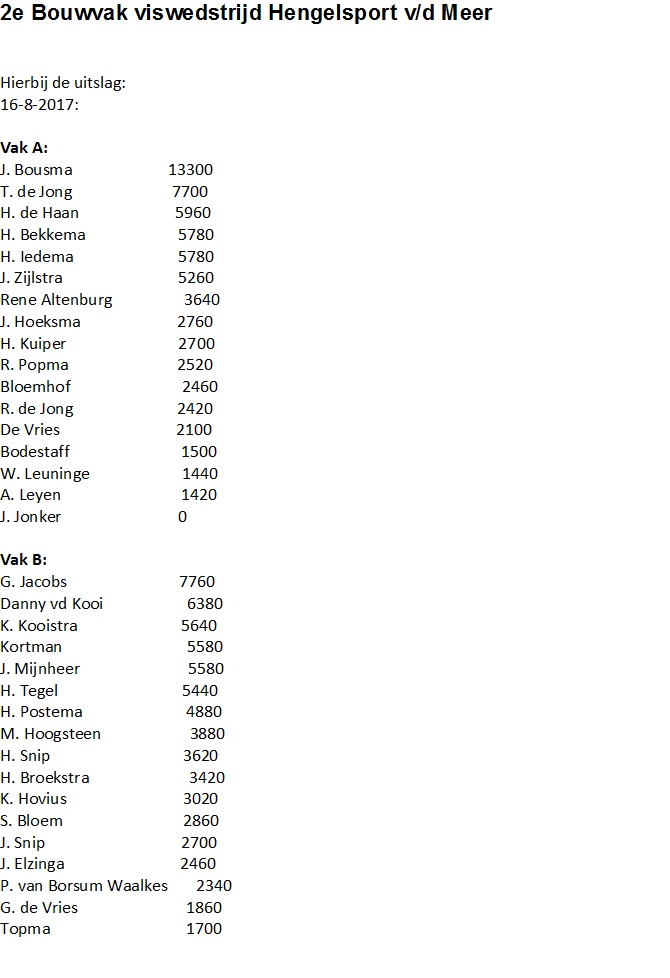 2e Bouwvak viswedstrijd Hengelsport v/d Meer