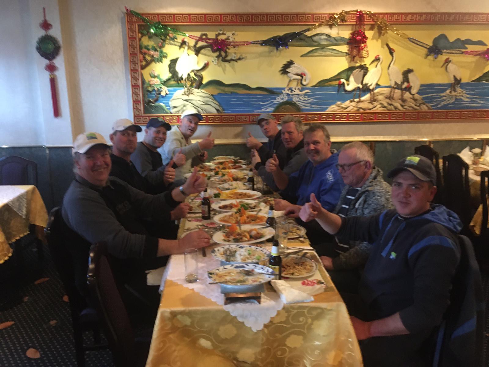 Snel de spullen opruimen en gezamenlijk naar de plaatselijke Chinees rijden om hier samen de dag even door te nemen onder het genot van een gecombineerde Chinese en Indische rijsttafel en natuurlijke een drankje.