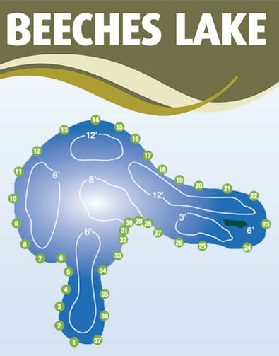 De andere jongen vissen een wedstrijd op Beeches Lake met 40 plaatsen deze plaatsen liggen erg ruim uit elkaar.