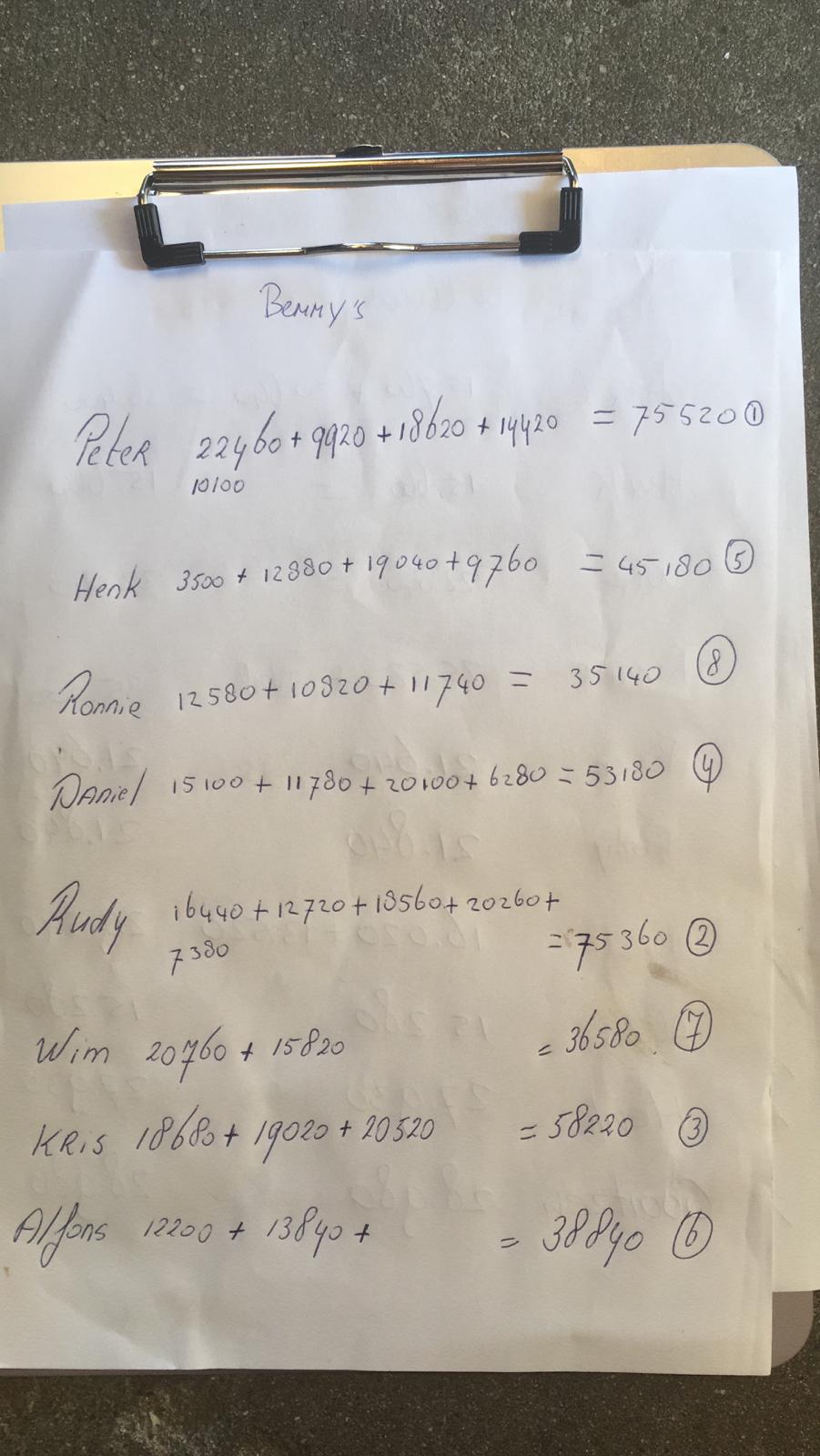 Ze hebben er een wedstrijd van gemaakt Peter wint deze met 75520 gram.