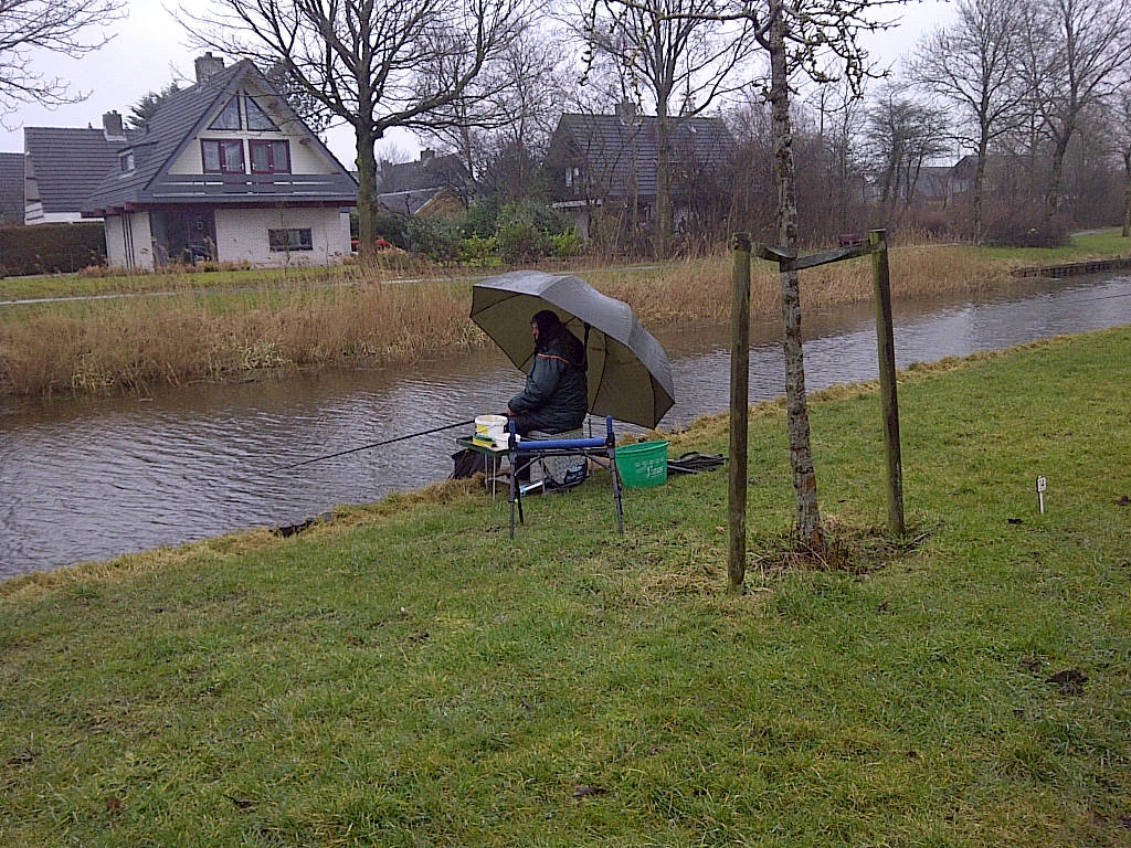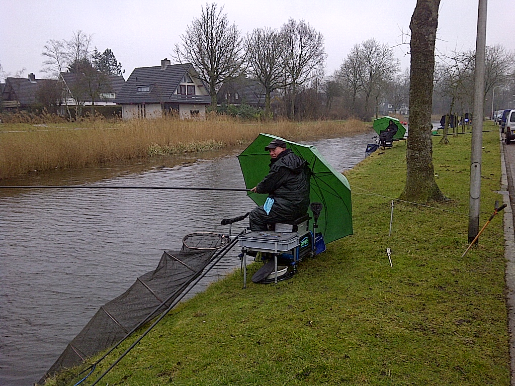 Regen en een koude wind maakte het er niet aangenamer op, vandaag was het heel veel kleine vis vangen deze aantallen moesten het vandaag doen, er waren diverse vissers die meer als honderd vissen in het leefnet hadden.