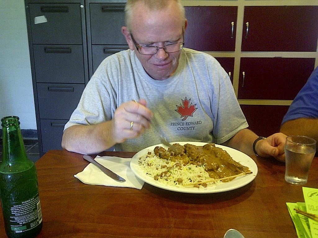 Opmerkelijk; was het vandaag dat Henk de Haan na een wat mindere periode en in het ziekenhuis te hebben gelegen, volgens Anton en Gesina weer op krachten moest komen en werd daarom getrakteerd op een heel groot bord vol nasi en saté` moet eerlijk zeggen hij heeft zich kranig geweerd heeft er is maar 1 stokje blijven liggen.