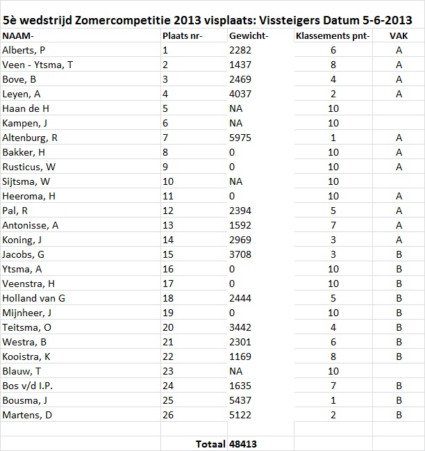 2013 Uitslagen Zomercomp