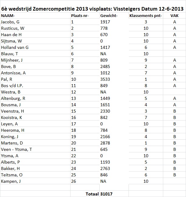 2013 Uitslagen Zomercomp