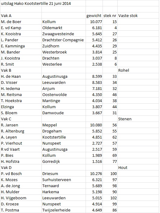 Onderstaand de 7 prijswinnaars per vak, er is in het vaste stok vak 1 prijsje meer dit heeft te maken met de grote van het vak