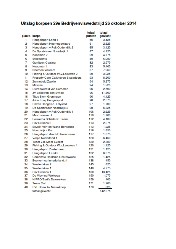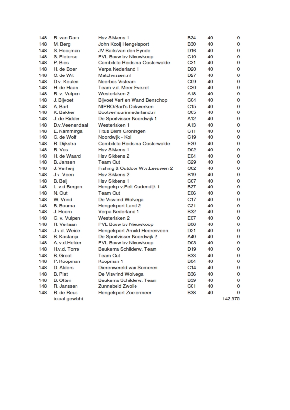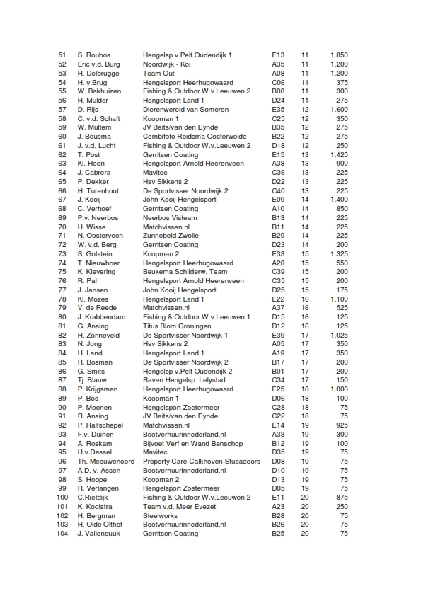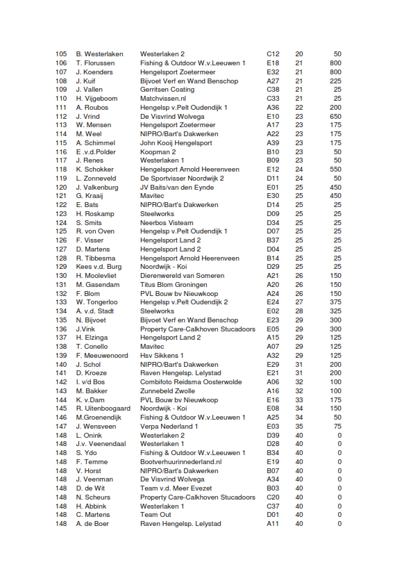 Dhr Zuidenduin winnaar individueel met 13300 gram