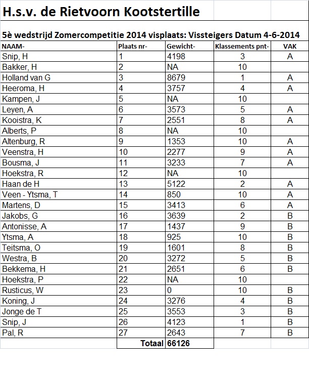 2014 Zomercomp Uitslagen