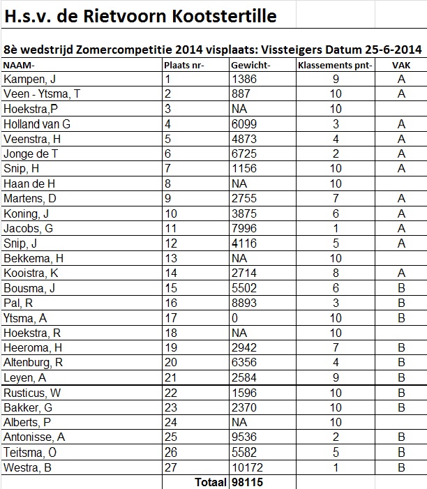 2014 Zomercomp Uitslagen