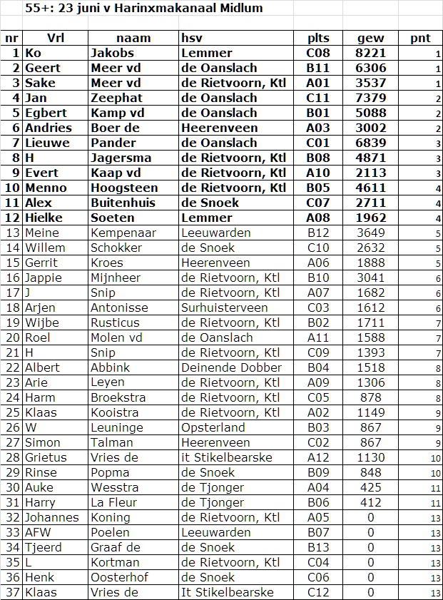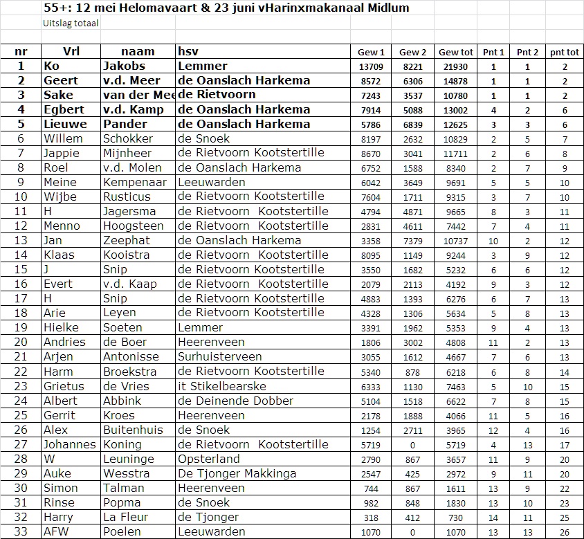 Het laatste zoetwater FK is vandaag gevist in het v Harinxmakanaal nabij Midlum door de categorie 55+.