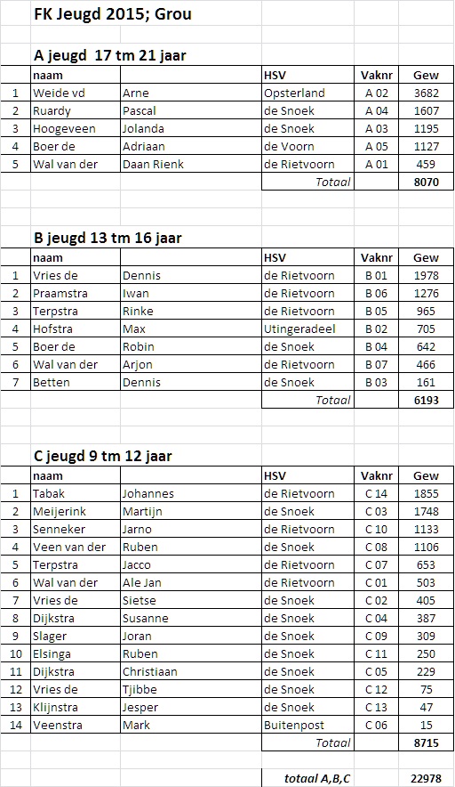 Bij ‘de oudste jeugd’ tm 21 jaar was het Arne vd Weide van hsv Opsterland, Gorredijk met 3682 gram.