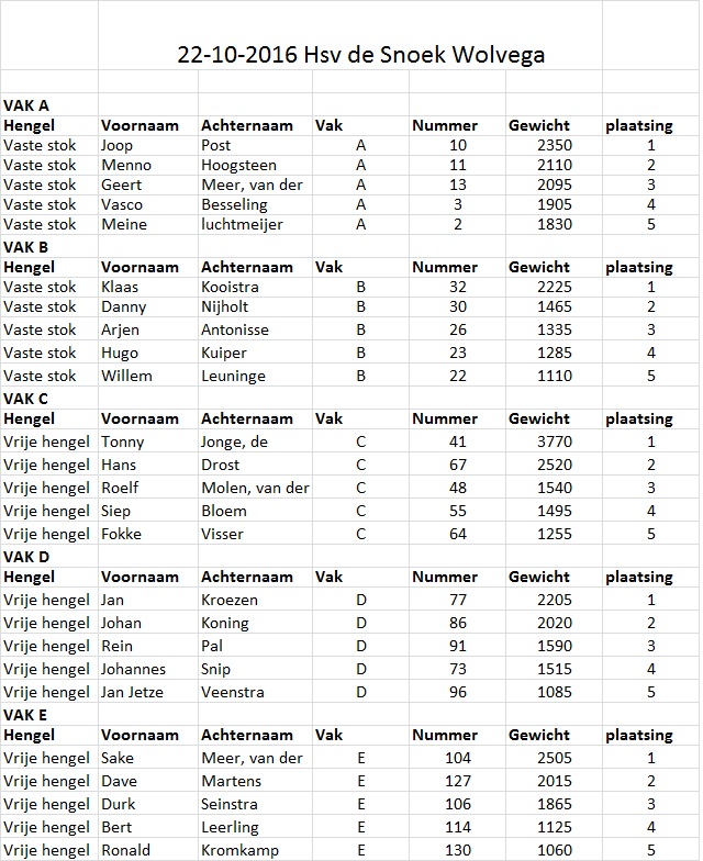 2016 Uitslagen Vrije
