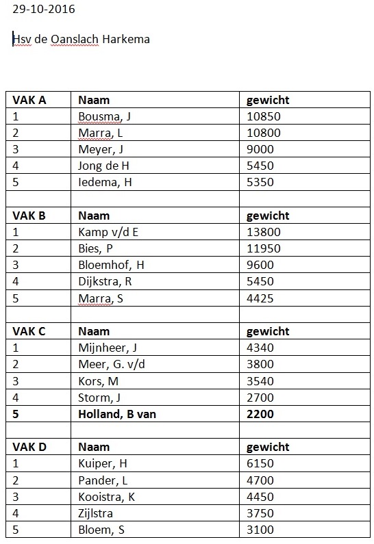 2016 Uitslagen Vrije