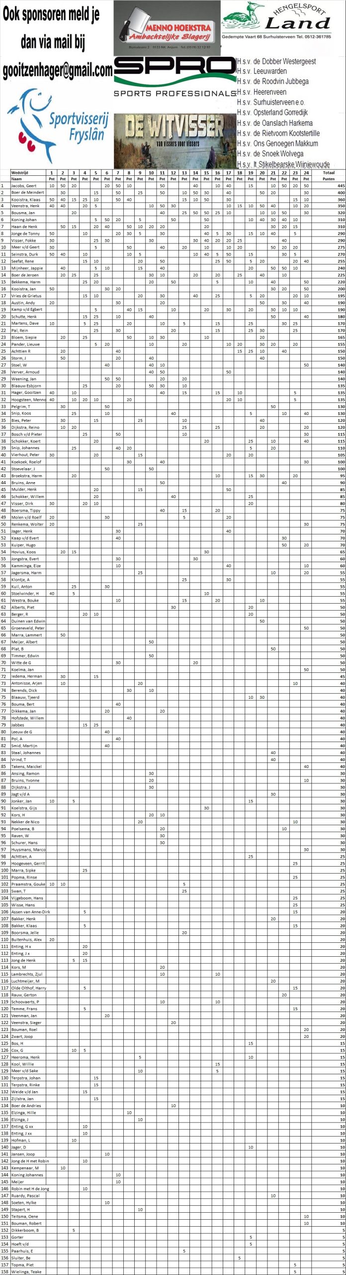 De Fisker fant Jier 2019 is worden Geert Jacobs met 445 punten Meindert de Boer is op de 2e plaats geëindigd met 400 punten en de nummer 3 is Klaas Kooistra met 360 punten