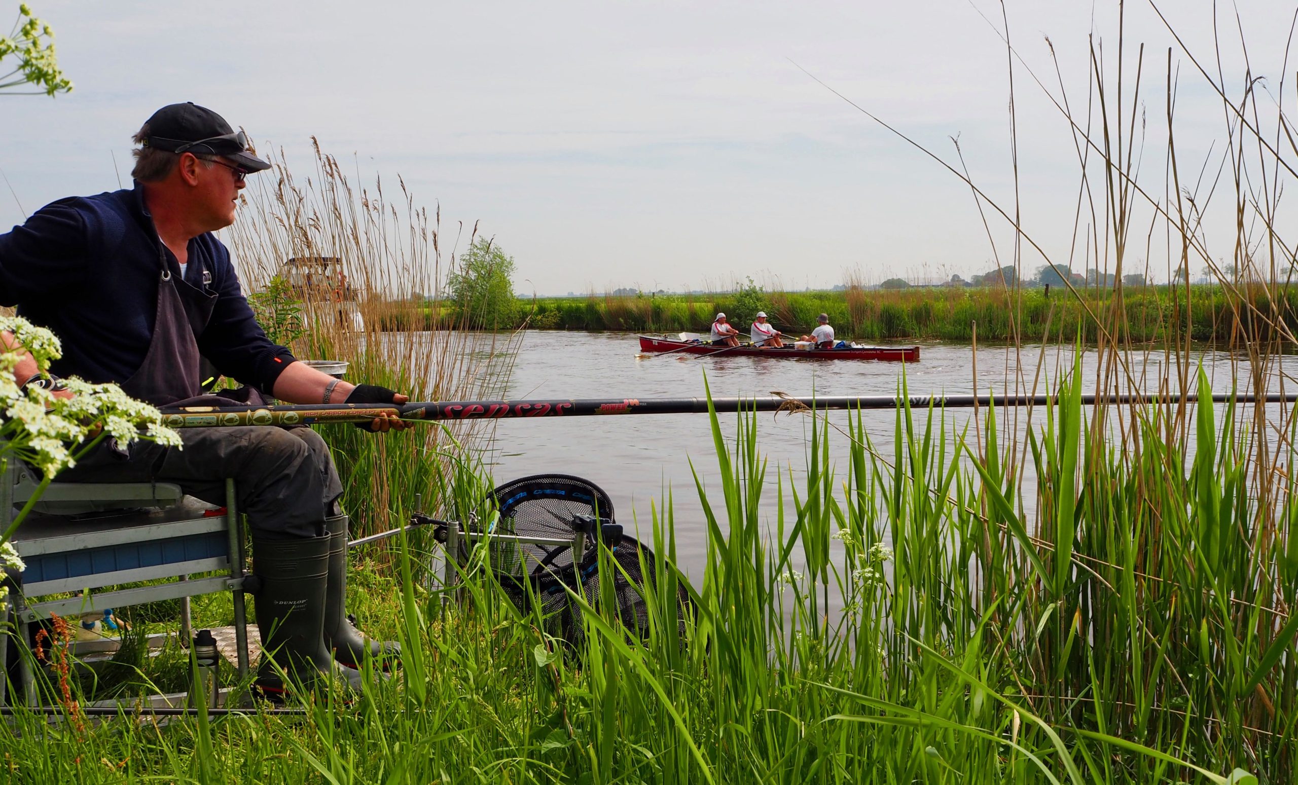 Terwijl de roeiers aan de 11StedenRoeitocht langstrekken zitten 90 sportvissers op een rij in heerlijk zonnig weer met een licht briesje aan de Workumer Trekvaart. Sterk geconcentreerd met een 13 meter lange hengel, turend naar hun ranke dobber om elk moment de winnende vis aan de haak te kunnen slaan. Dit was het beeld tijdens de Friese Kampioenschappen wedstrijdvissen op zaterdag 12 mei langs de Workumer Trekvaart.