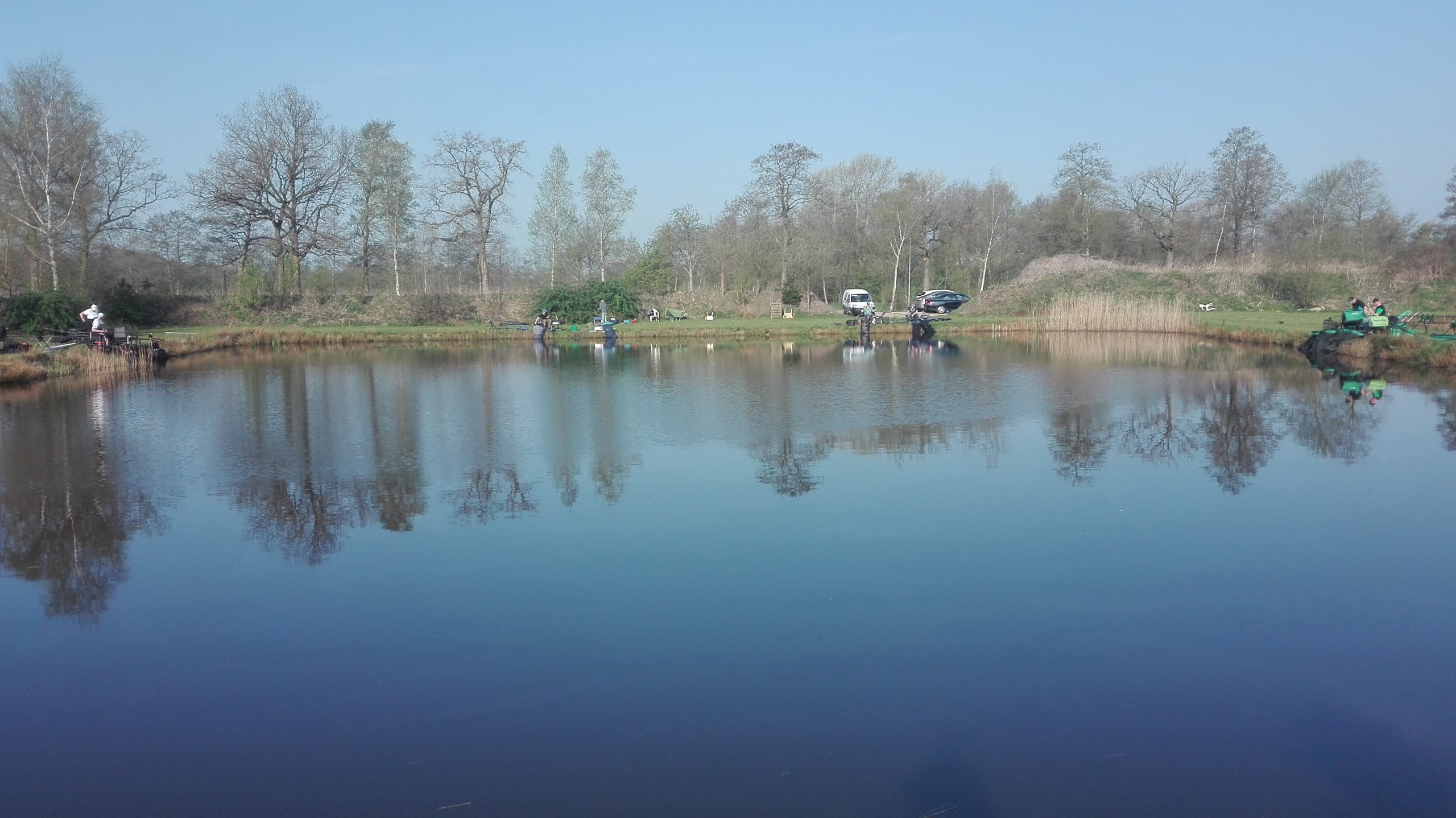 Bij aankomst waren er al enkele koppels aanwezig, wachtend op de eigenaar voor een bakje koffie, dit duurde ons te lang en zijn begonnen met de loting, we hebben besloten om maar alvast te beginnen met het op de plek brengen van de visspullen.
