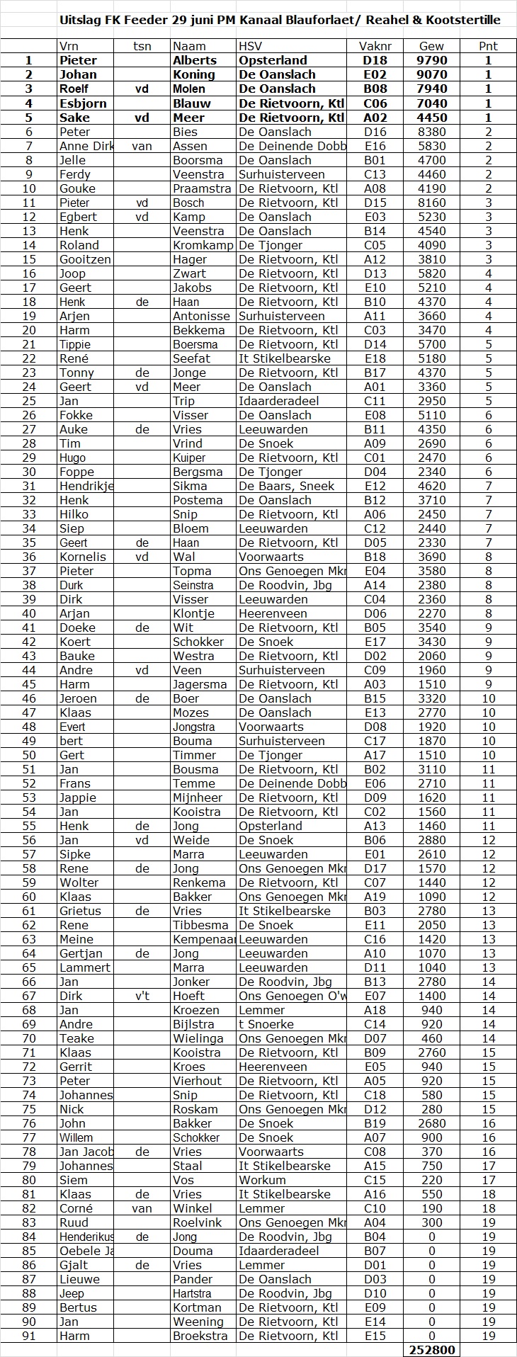 Vandaag zaterdag, 29 juni, vond het Friese Kampioenschap feedervissen plaats op het bekende wedstrijdtraject PM Kanaal Blauforlaet/Reahel.
