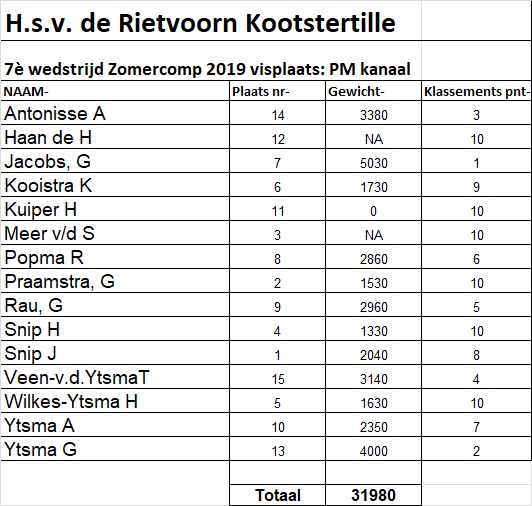 7e wedstrijd gevist onder regenachtige omstandigheden